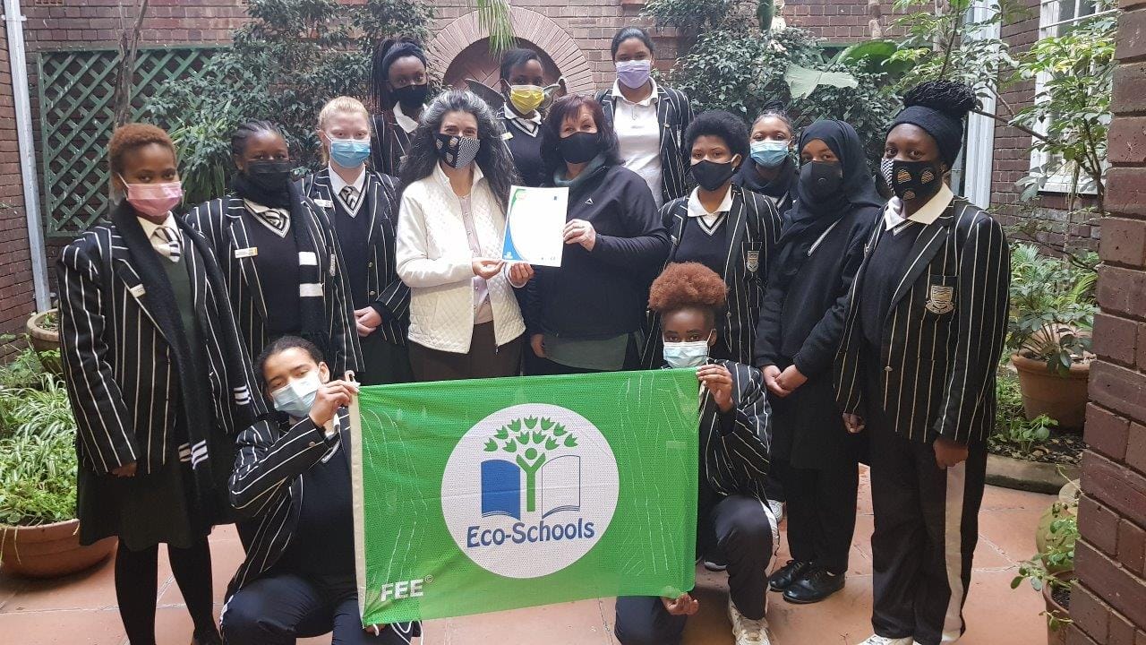 The EcoSchools Certificates and Portfolio’s will be exhibited in the Library and the Flag will be flown below the School Flag, in the front of the school. The Young Reporters for the Environment (YRE) posed to showcase this achievement together with Miss Goncalves and Mrs Bosch.