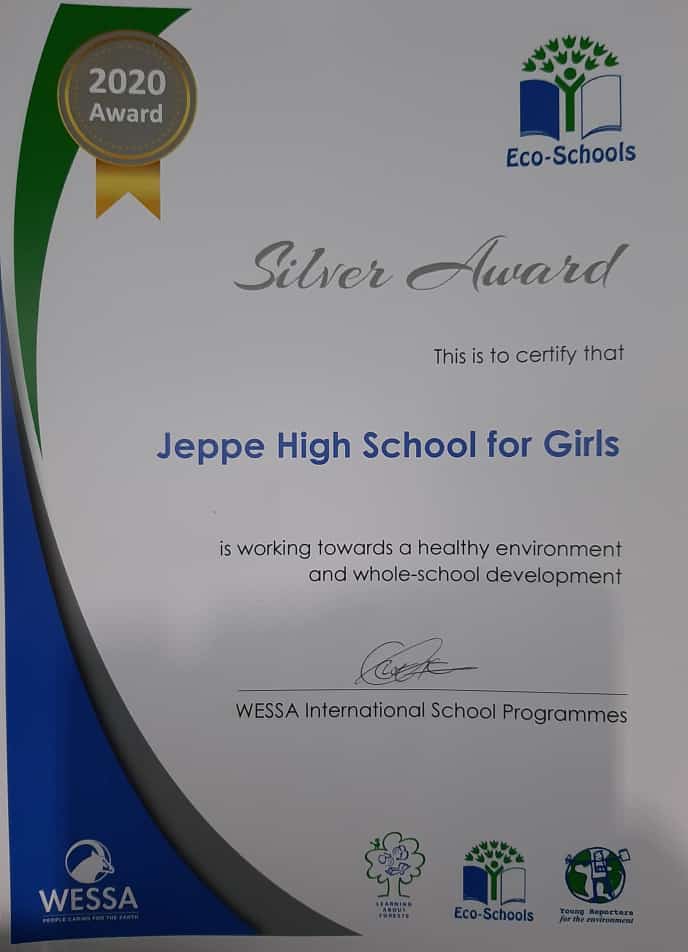 During the July school holidays, the school was Covid-belatedly awarded with our 2nd EcoSchools Award – SILVER – for the projects completed in 2020. We established a spekboom nursery in 2019, and were able to give our flower show judges spekboom plants in 2021. We aim to grow a spekboom hedge along the school perimeter palisade fence. We introduced a rain water harvesting project to replace municipal water for washing hands and flushing the toilets in the cloakrooms. This was done despite the lockdown conditions which prevailed for most of the academic year. The Portfolio was submitted in March 2021.